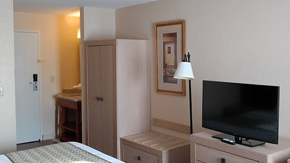 This accessible room includes grab bars, complimentary continental breakfast and WiFi access. The room features a separate living area and a TV. Wheelchair available in this room.